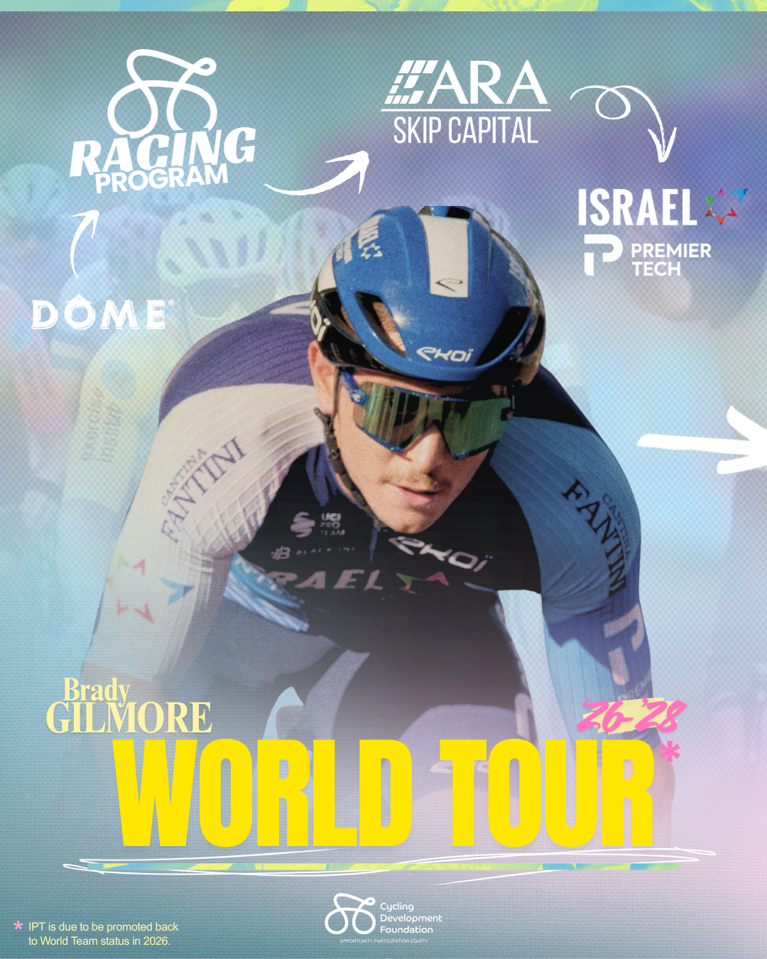 The Cycling Development Foundation (CDF) is proud to congratulate alumnus Brady Gilmore on signing his first WorldTour contract with Israel – Premier Tech, where he will compete at the highest level of professional cycling from 2026 through 2028.