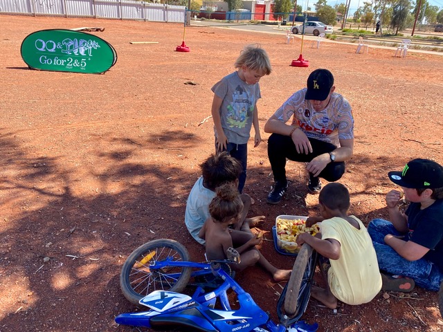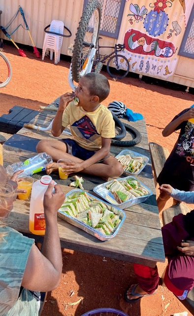 In September 2021 the Laverton community are holding a triathlon and another of our activities on another day was to prepare the children for this event. Lunch provided a to speak to the child who designed this year’s Perth-Laverton Classic riders’ jersey, he explained his inspiration and the meaning he ascribes to his design. His winning jersey design will be used as the template for the 2021 Perth Laverton Cycling Classic team jersey, to be worn for the entirety of the event by the riders when they ride from Perth to Laverton in September.