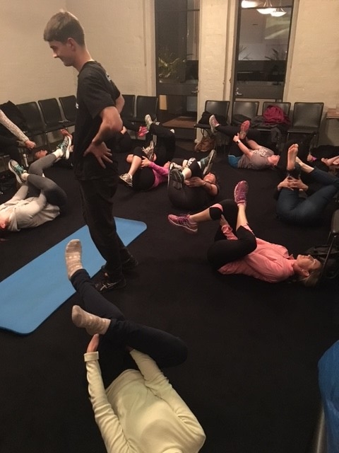 Attendee’s learned stretching and strengthening exercises to benefit cycling performance and enjoyment courtesy of the CDF service provider Exercise Institute