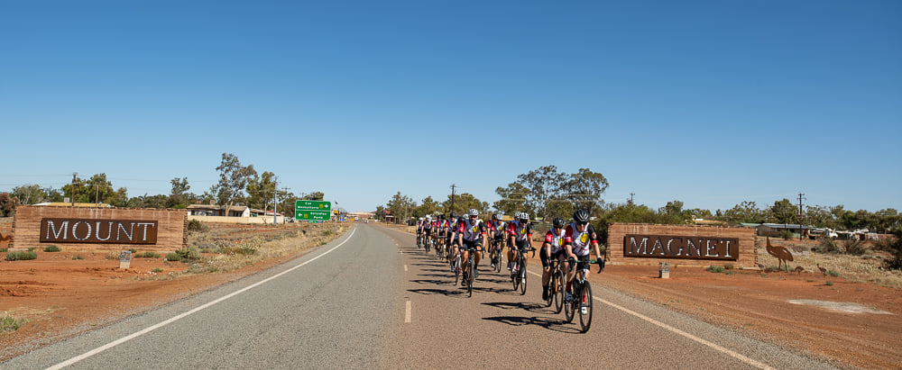 Tuesday’s distance from Charles Darwin Reserve to our next campground in Mt Magnet was 233km, a big ask for most of our group. The riders were given the option of a high speed 87km motopacing session to Paynes Find, or getting shuttled to Paynes Find via bus. A group of 12 of the stronger riders took up the motopacing challenge, completing the leg in around 3 hours.