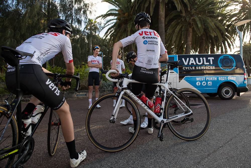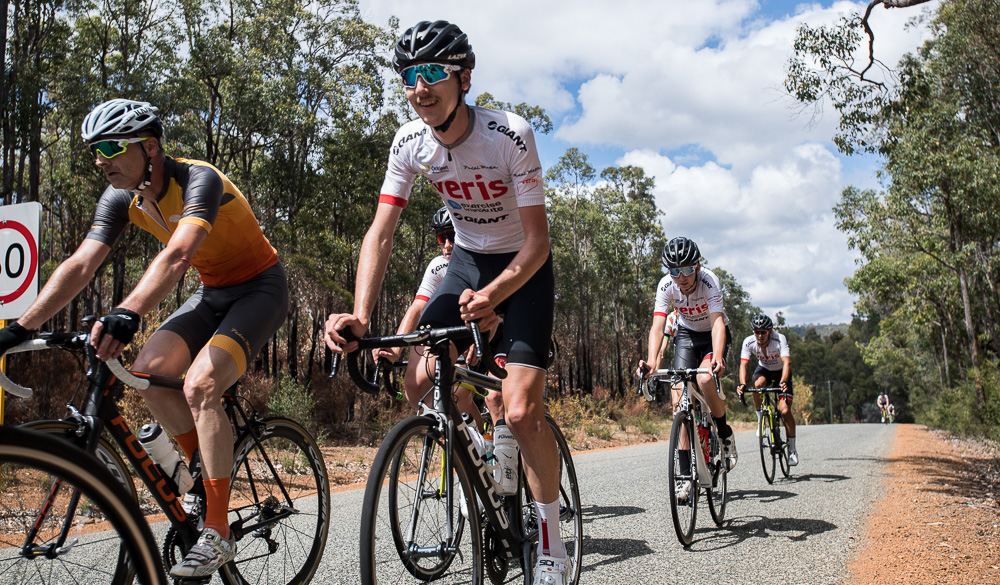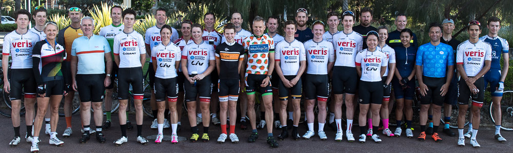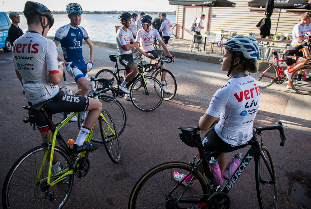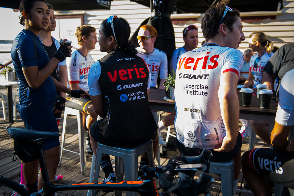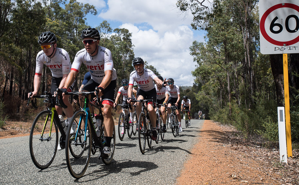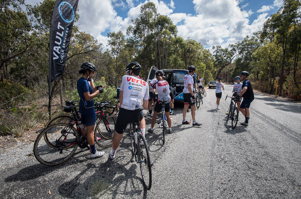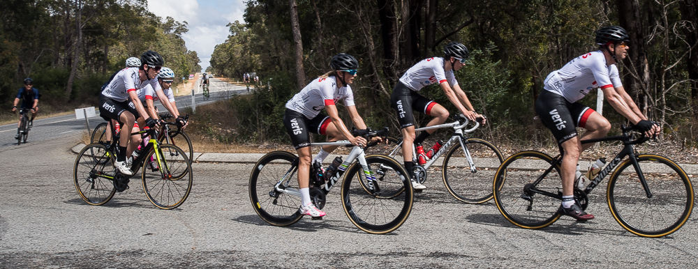 Approximately 27 attendees departed for a challenging 120km loop through the Perth Hills. Two groups formed on the road, one averaging around 28km/hr and the other close to 31km/hr across 1300meters of climbing elevation. Veris Racing athletes were on hand to assist and pace participants across the course.