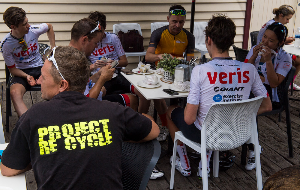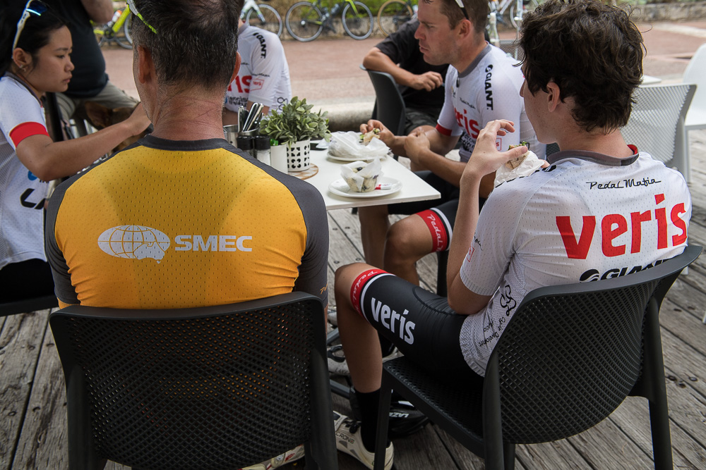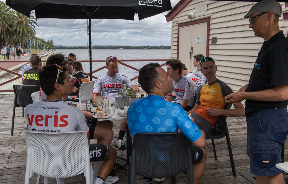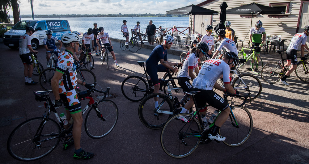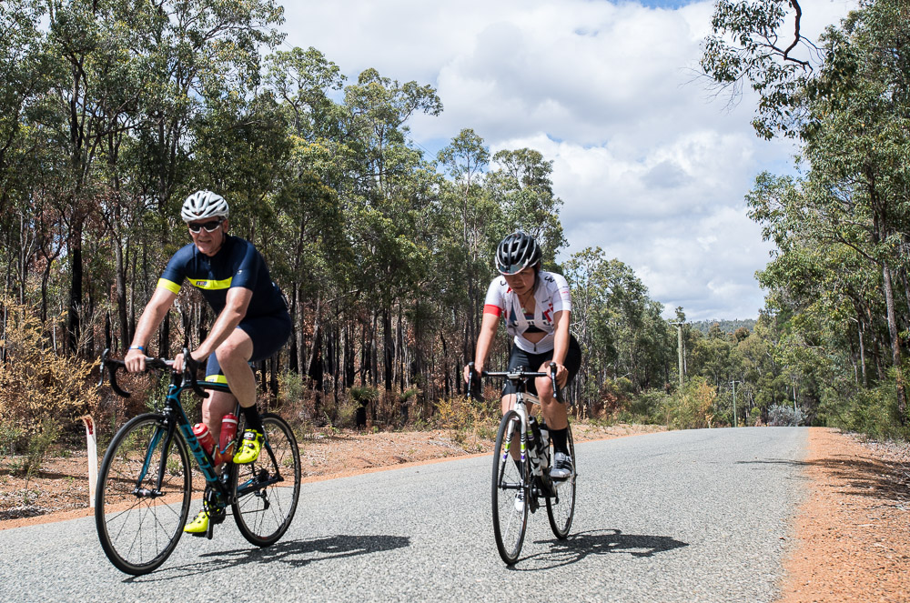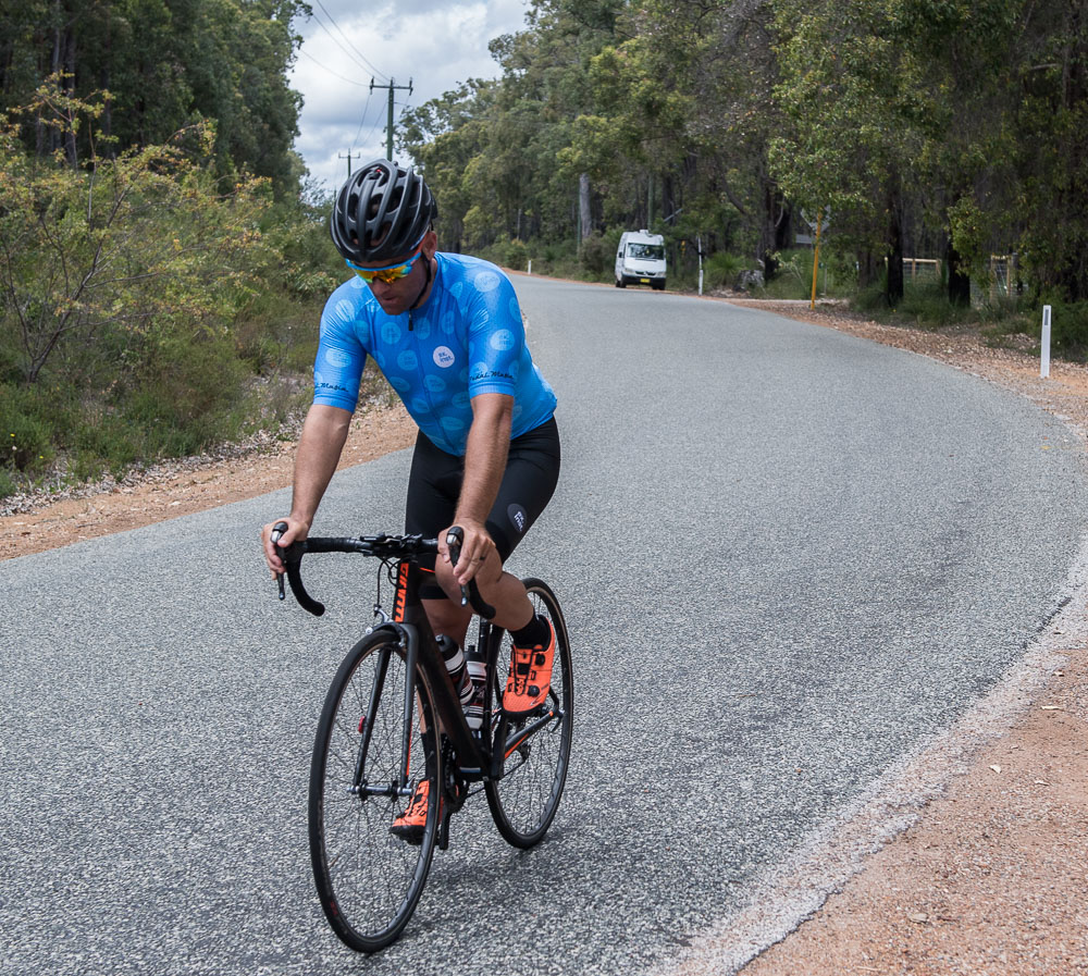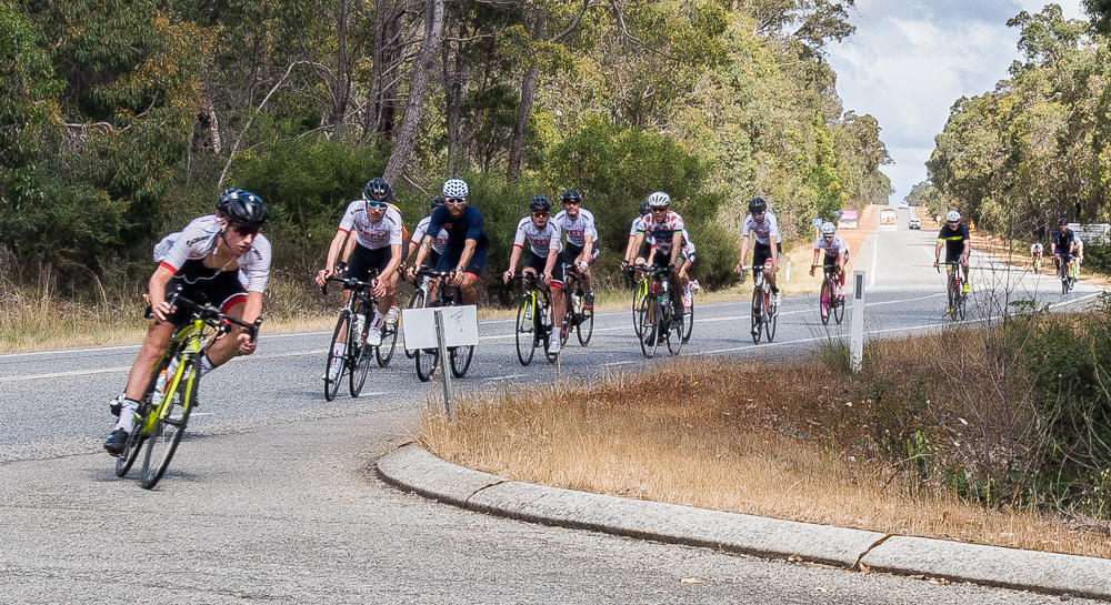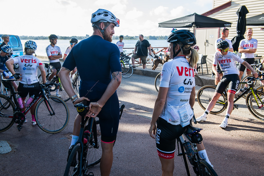 Approximately 27 attendees departed for a challenging 120km loop through the Perth Hills. Two groups formed on the road, one averaging around 28km/hr and the other close to 31km/hr across 1300meters of climbing elevation. Veris Racing athletes were on hand to assist and pace participants across the course.